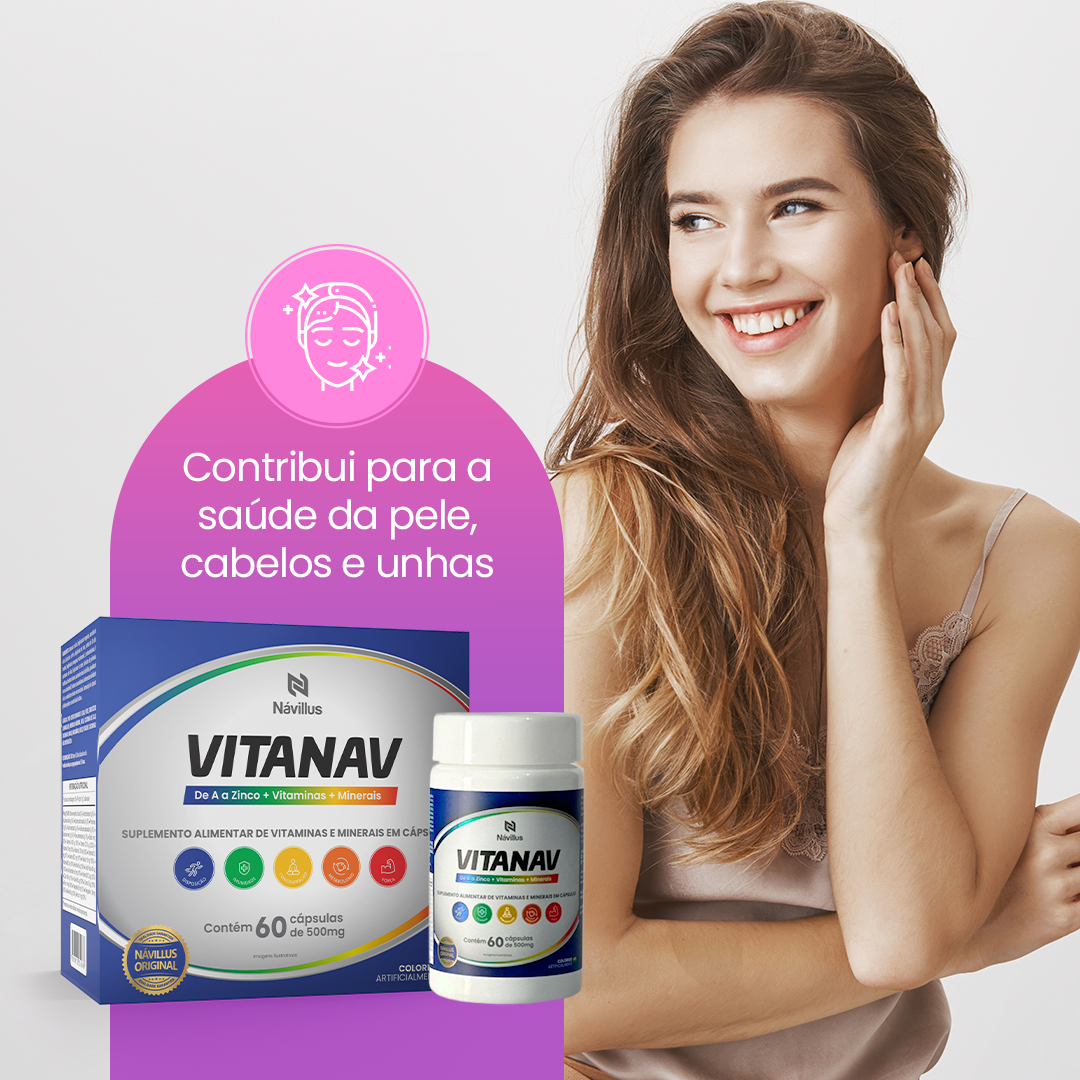 O Vitanav reúne vitaminas e minerais fundamentais para apoiar o funcionamento do corpo de forma equilibrada, ajudando você a manter energia, foco e bem-estar na rotina.